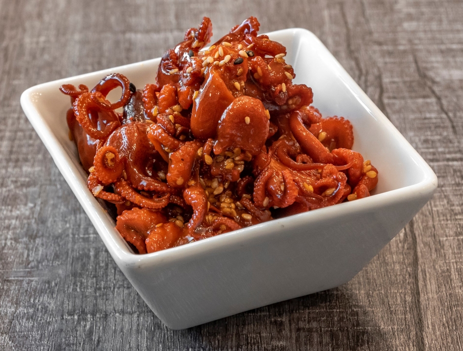 Spicy tuna, shrimp tempura in soy paper; topped with octopus, jalapeno, garlic and eel sauce, and yuzu ponzu