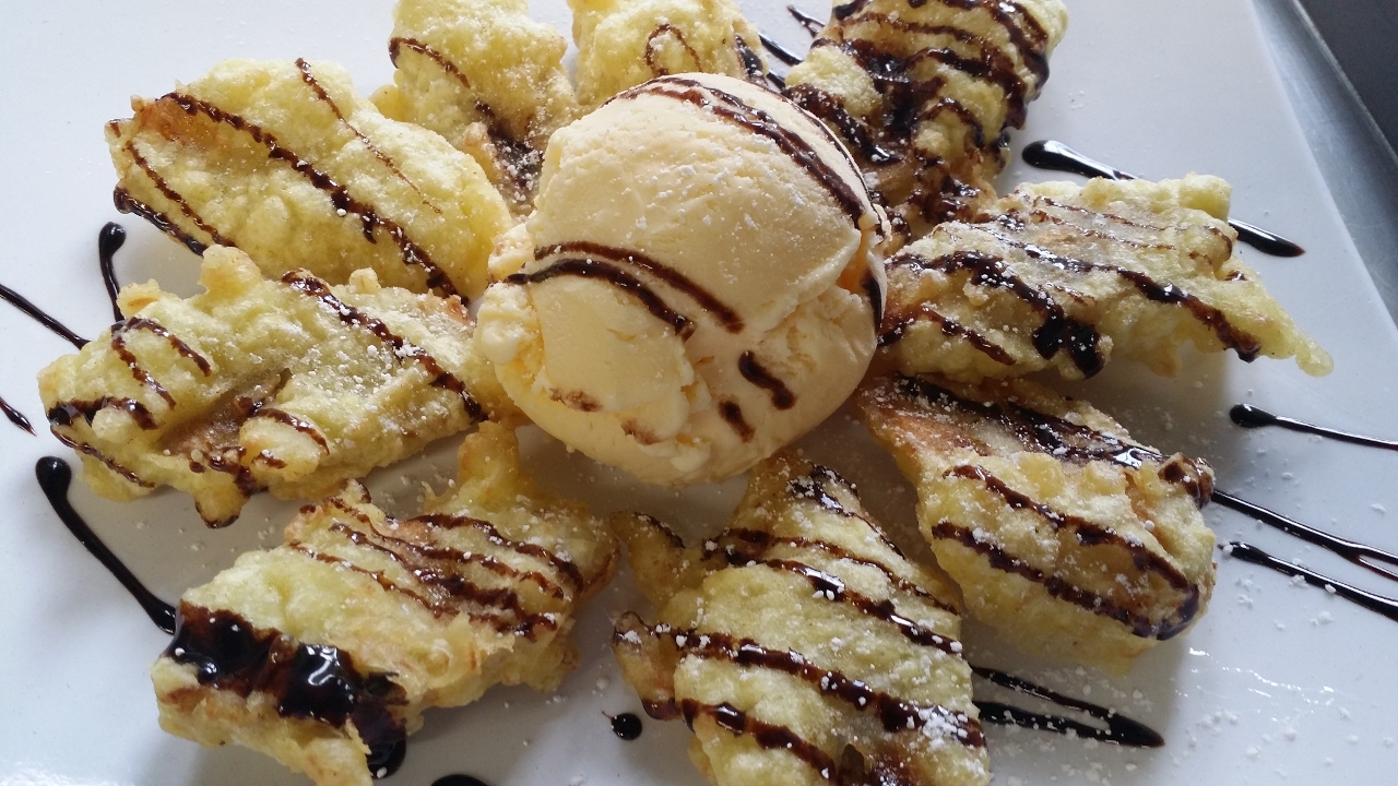 Fried banana with vanilla ice-cream